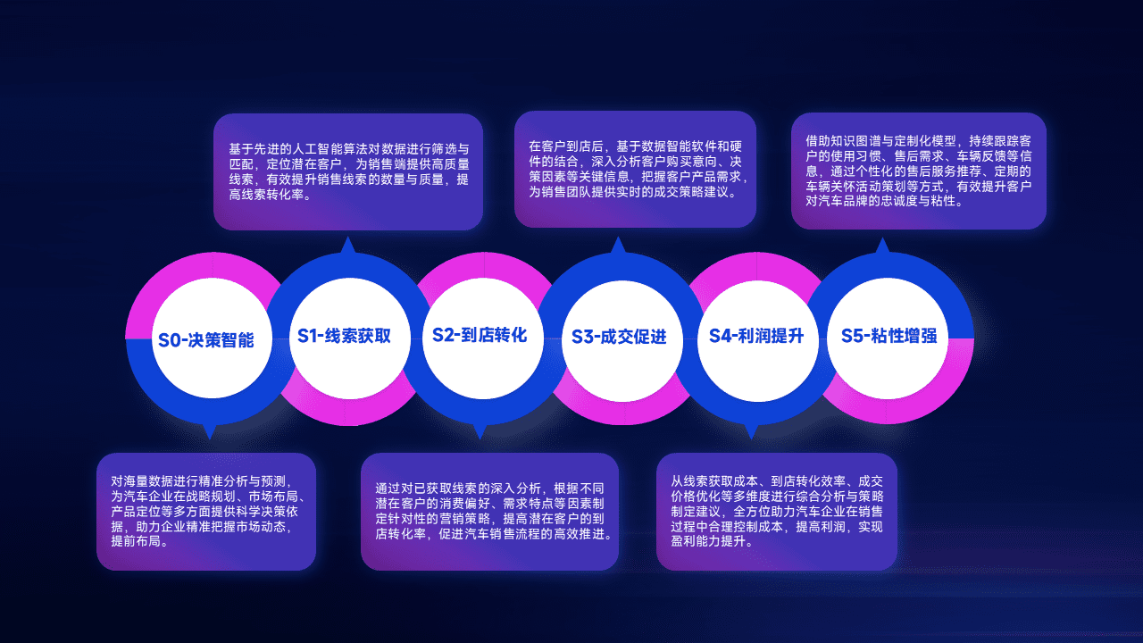 通过拓宽潜在客户来源、、、优化线索分配并提高到店转化率,,,以增强销售效率。。同时,,,,利用线索数据不断优化分析模型,,,有效提升转化率,,扩大营销影响力。。
